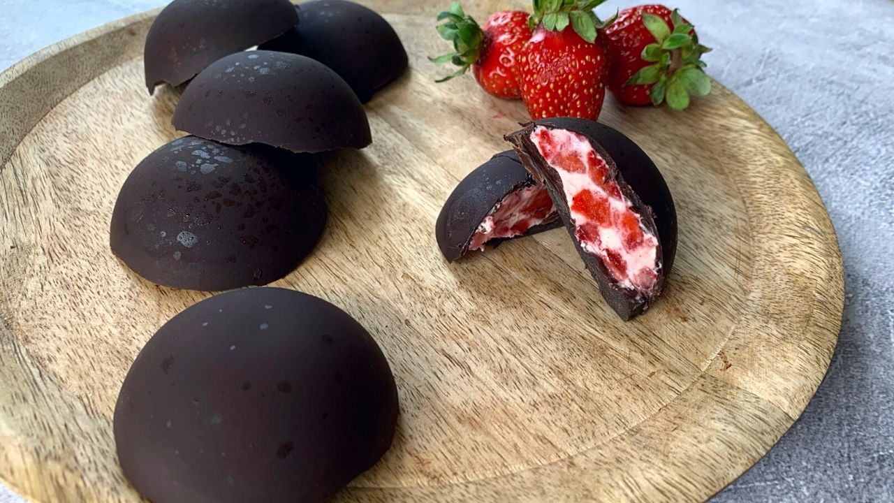 Przepis na domowe czekoladki, które przygotujesz w kilka minut. Nadzienie stanowi truskawkowy krem. Możesz je również przygotować w wersji bez nabiału.