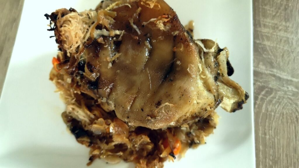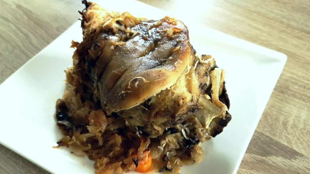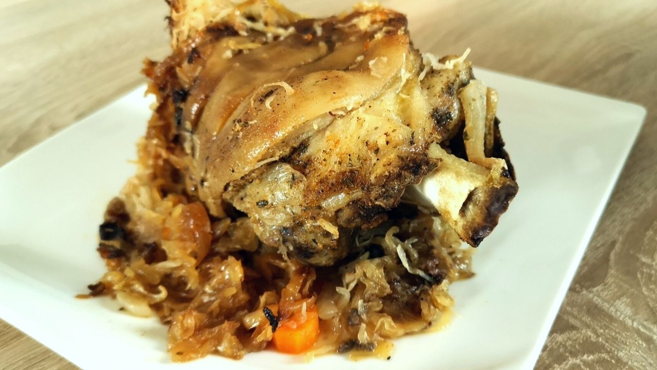 Pyszna, rozpływająca się u ustach golonka w kapuście przygotowana w wolnowarze.