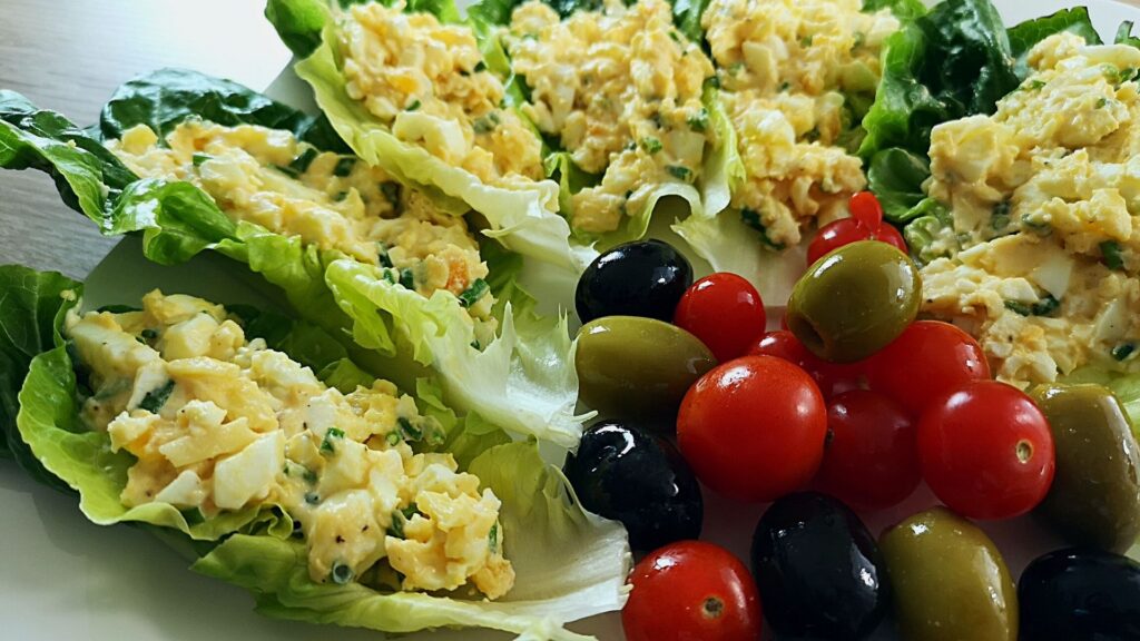 Ekspresowe keto kanapki z sałatą i pastą jajeczną.