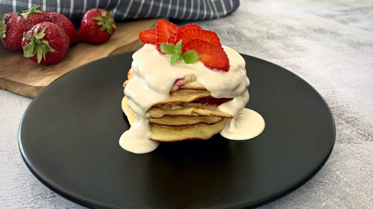 KETO placuszki jogurtowe z truskawkami z cynamonowym sosem