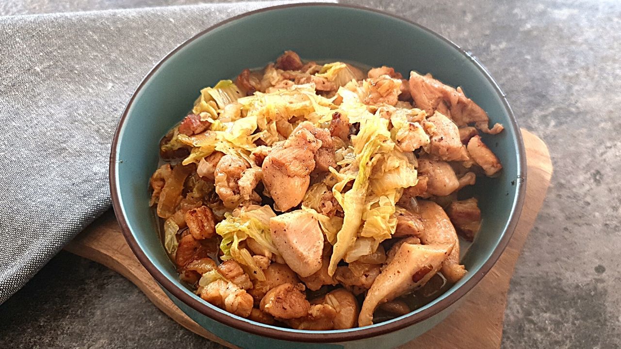 Udko kurczaka z boczkiem i kapustą