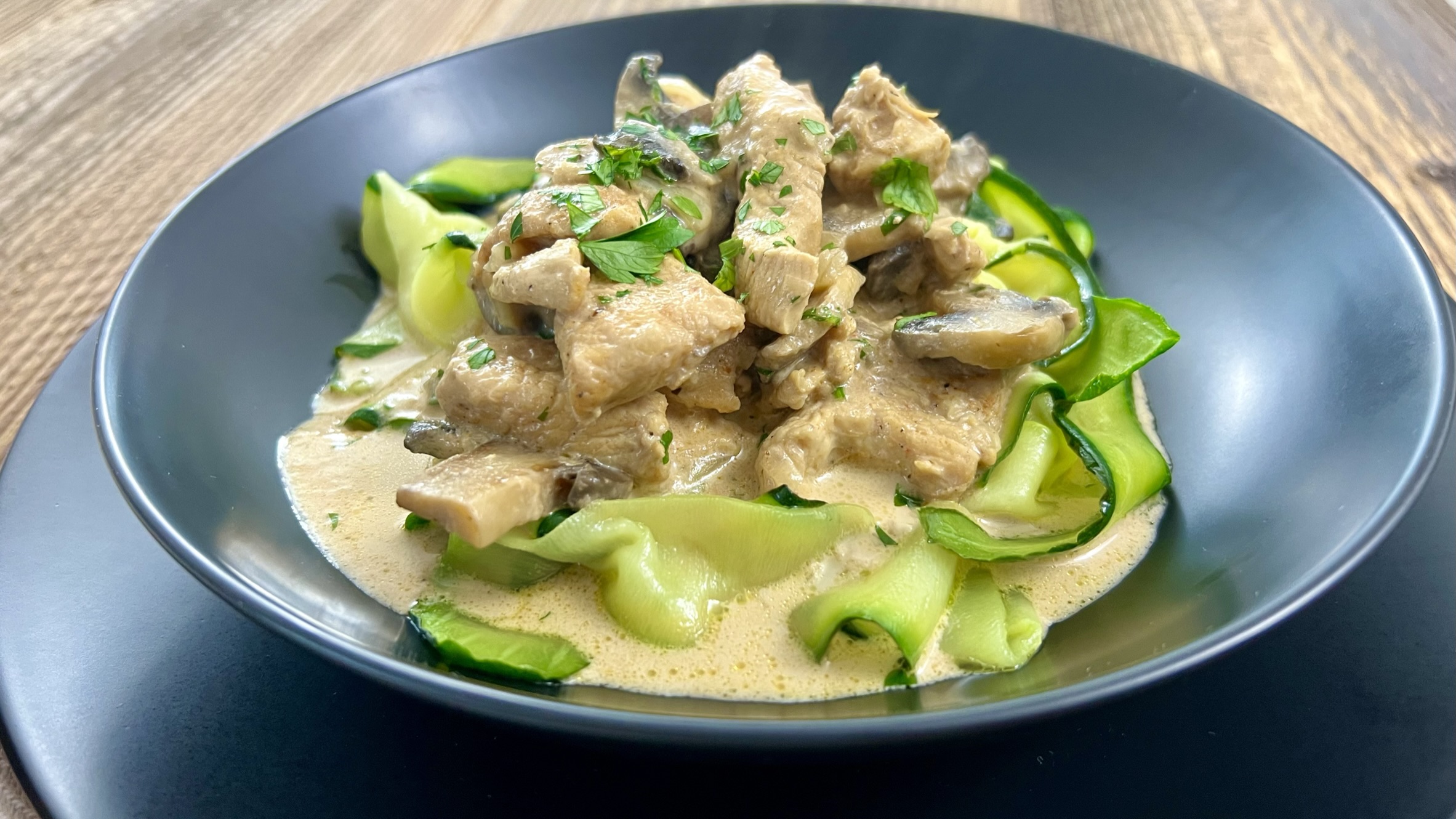 Zapraszam na pyszny obiad, czyli strogonow z indyka w wersji keto z dodatkiem makaronu, który przygotujesz z cukinii. Idealna propozycja na sycący obiad, który przygotujesz w jednym garnku.