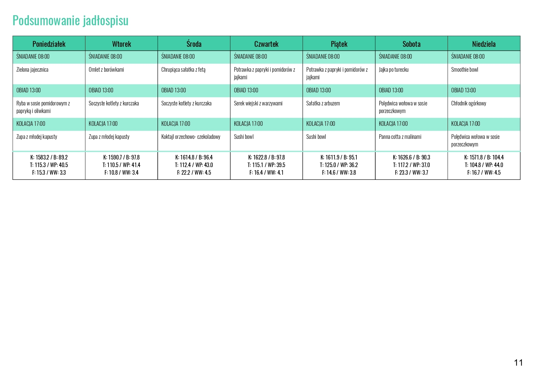 - dni możesz dowolnie zamieniać i zapętlać dietę,