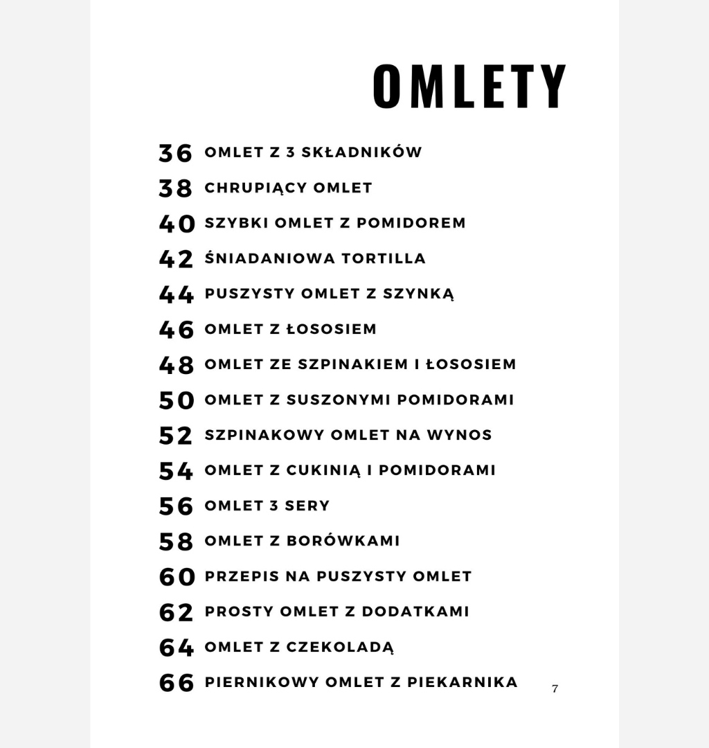 - ? Dokładną listę składników, opis wykonania i makro do każdego przepisu,